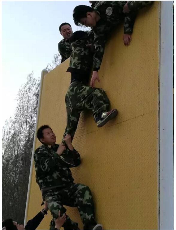 ▲齊心協力,突破難關。這是最富挑戰的一個項(xiang)目,為了完成(cheng)這項(xiang)任務,所有隊員都目標一致,將自己(ji)的身體作為團(tuan)隊伙伴的攀墻基(ji)石,用自己(ji)的雙手撐起一張厚實堅強(qiang)的保護(hu)網……