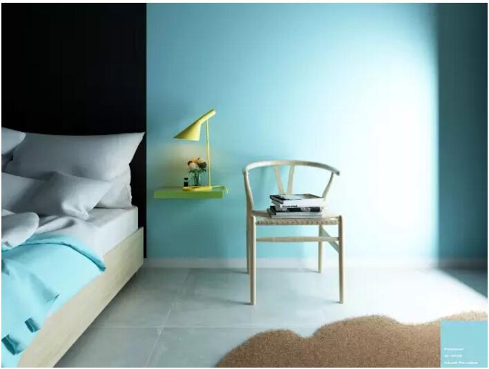 介(jie)于藍色(se)(se)和綠色(se)(se)之間,夢幻的(de)顏色(se)(se),搭配原木(mu)和暖色(se)(se)系列(lie)的(de)地毯(tan),清新卻又溫暖