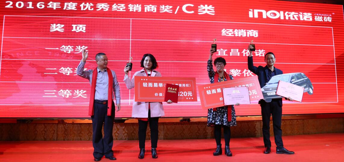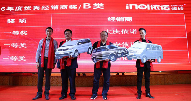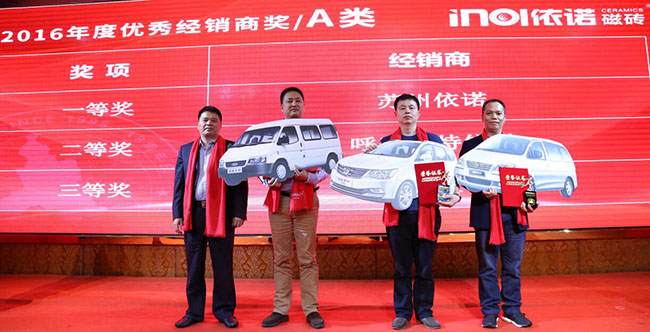 依諾瓷磚(zhuan)(zhuan)能有(you)今天(tian)的(de)(de)成績和成長,離不開所有(you)優秀的(de)(de)依諾人的(de)(de)共同努力,在”2016年優秀經(jing)銷商頒(ban)獎典禮“上,依諾瓷磚(zhuan)(zhuan)對這(zhe)一年來取得優異成績的(de)(de)經(jing)銷商進行表(biao)彰。