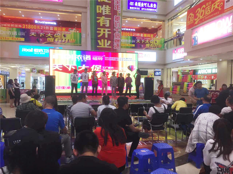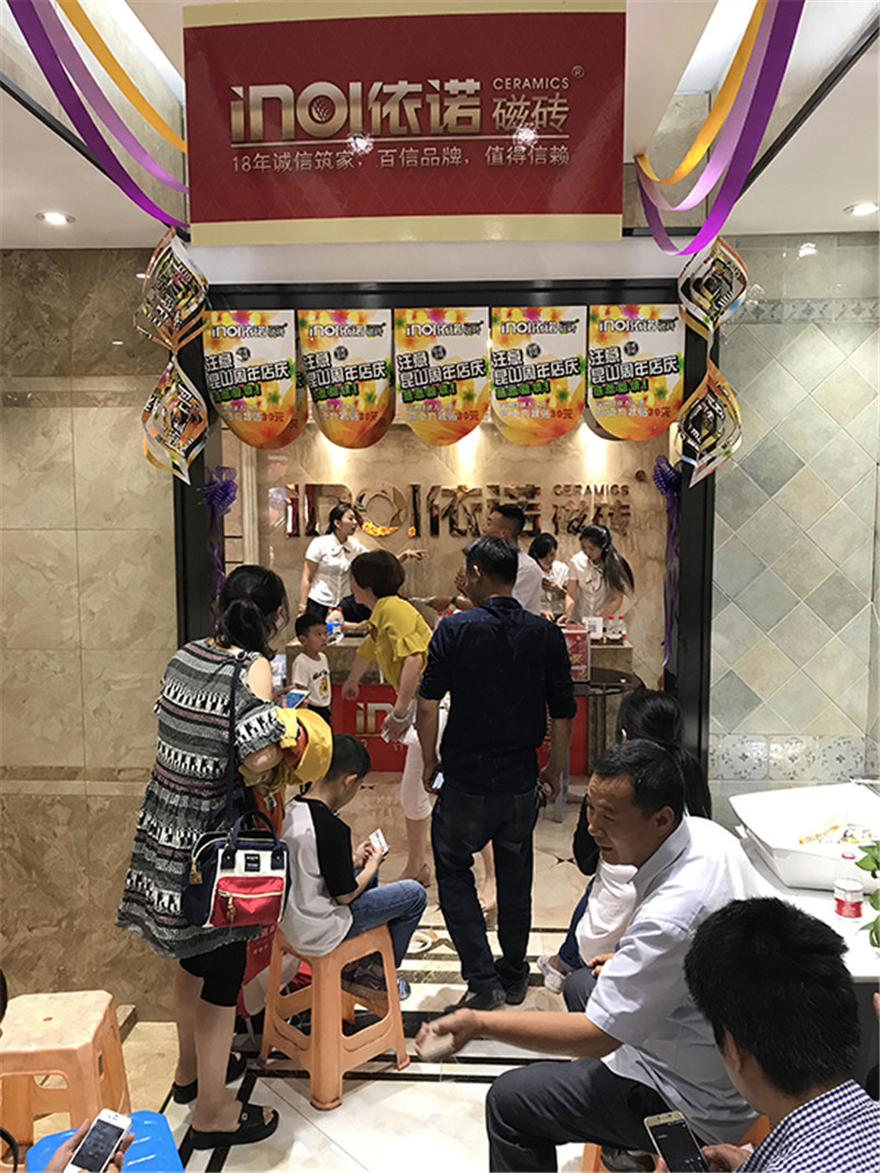 依諾瓷磚一個至今19年的瓷磚品牌, 依諾主打產品通體大理石瓷磚及釉面磚,產品質量及花色取得了廣大客戶的認可,2017年主推的大規格瓷磚一上市就受到了市場的喜愛。依諾瓷磚所到城市每場瓷磚促銷活動都可謂轟動全城。