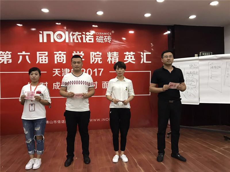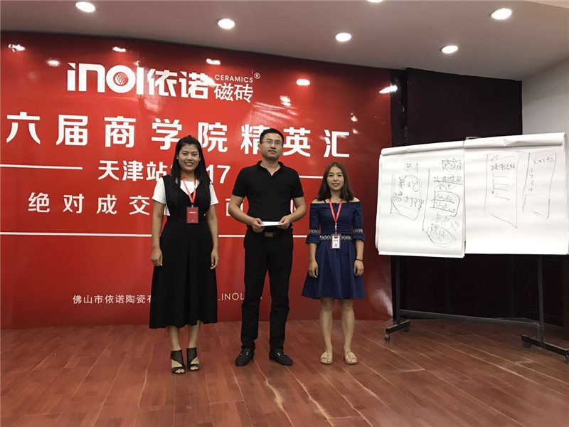 6月13日,依諾瓷磚第六屆商(shang)學(xue)院精英匯之“絕對(dui)成交(jiao)”培訓天(tian)津(jin)站圓滿(man)結束(shu),著名(ming)行(xing)業導師黃(huang)(huang)會超(chao)老(lao)師與數十名(ming)學(xue)員面對(dui)面親(qin)切交(jiao)流,在(zai)兩天(tian)的(de)培訓里,黃(huang)(huang)會超(chao)老(lao)師從說話的(de)方式、深入營銷、產品介紹等全(quan)方位(wei)地為學(xue)員們講解了促進(jin)訂單成交(jiao)的(de)要領(ling),全(quan)干貨教(jiao)學(xue)。