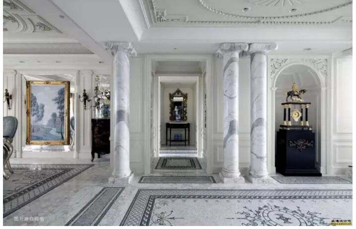 比如這個法式別墅的案例,誰能說這是暴發戶呢,白色大理石元素在其中的應用可謂優雅高貴,所以要我說,潮流,知道就好,追不追,這就未必了,如果你真的喜歡古典歐式,就算過氣了又怎樣呢。