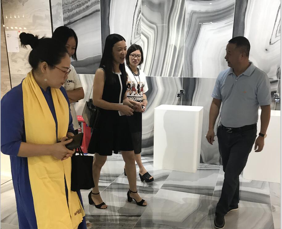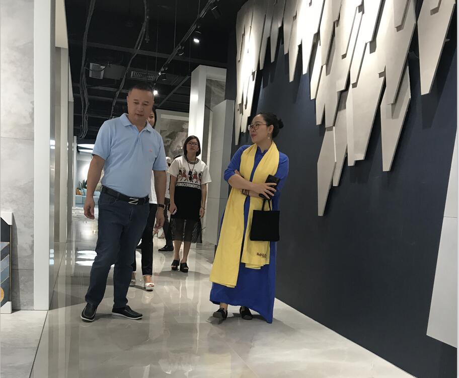 9月15日,佛山市室內設計協會秘書長吳虹霏、集采負責人吳佩怡、ID+1設計網江山等一行人蒞臨依諾瓷磚佛山總部展廳參觀,依諾瓷磚品牌總經理戴富林親自接待,并帶大家參觀講解依諾瓷磚展廳設計、產品應用等。