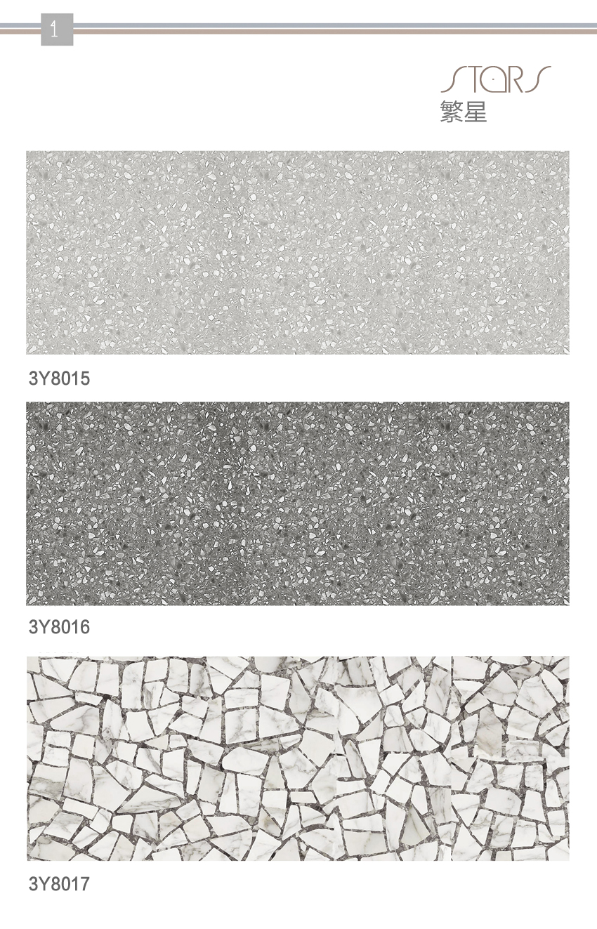 釉面磚,在花色上不僅涵蓋了石紋、水泥、布紋等廣受認可且易于搭配的肌理,更有今年陶瓷屆網紅級紋理——復古【水磨石】,給新時代的家裝注入了舊時光的情懷。