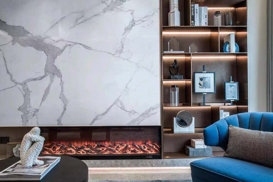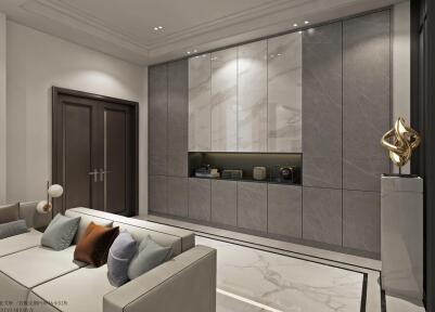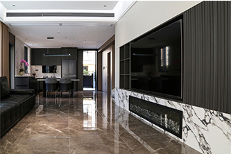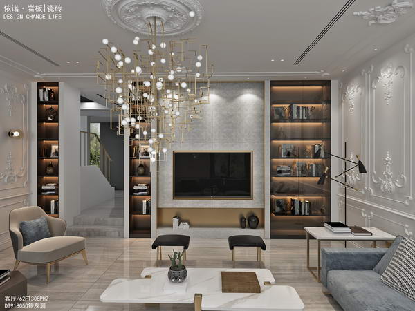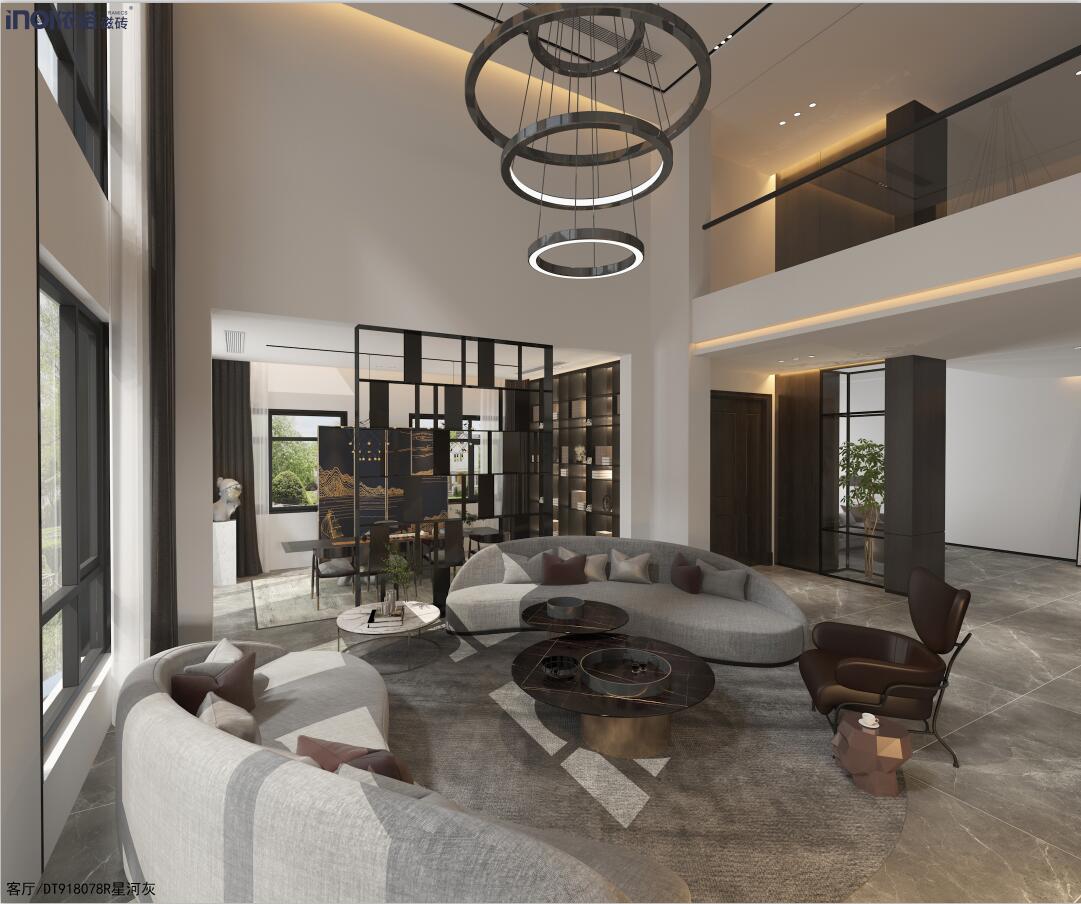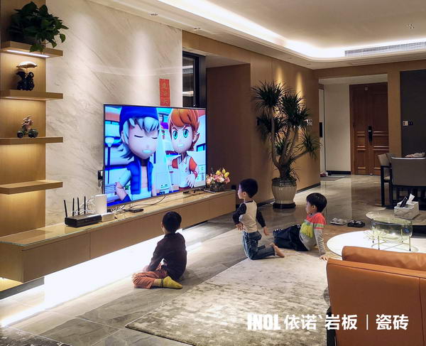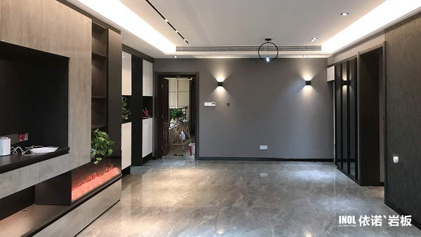廣東佛山·凱麗山莊,600㎡現代奢宅,全屋選用地磚、背景墻、衛生間瓷磚選用依諾巖板瓷磚。