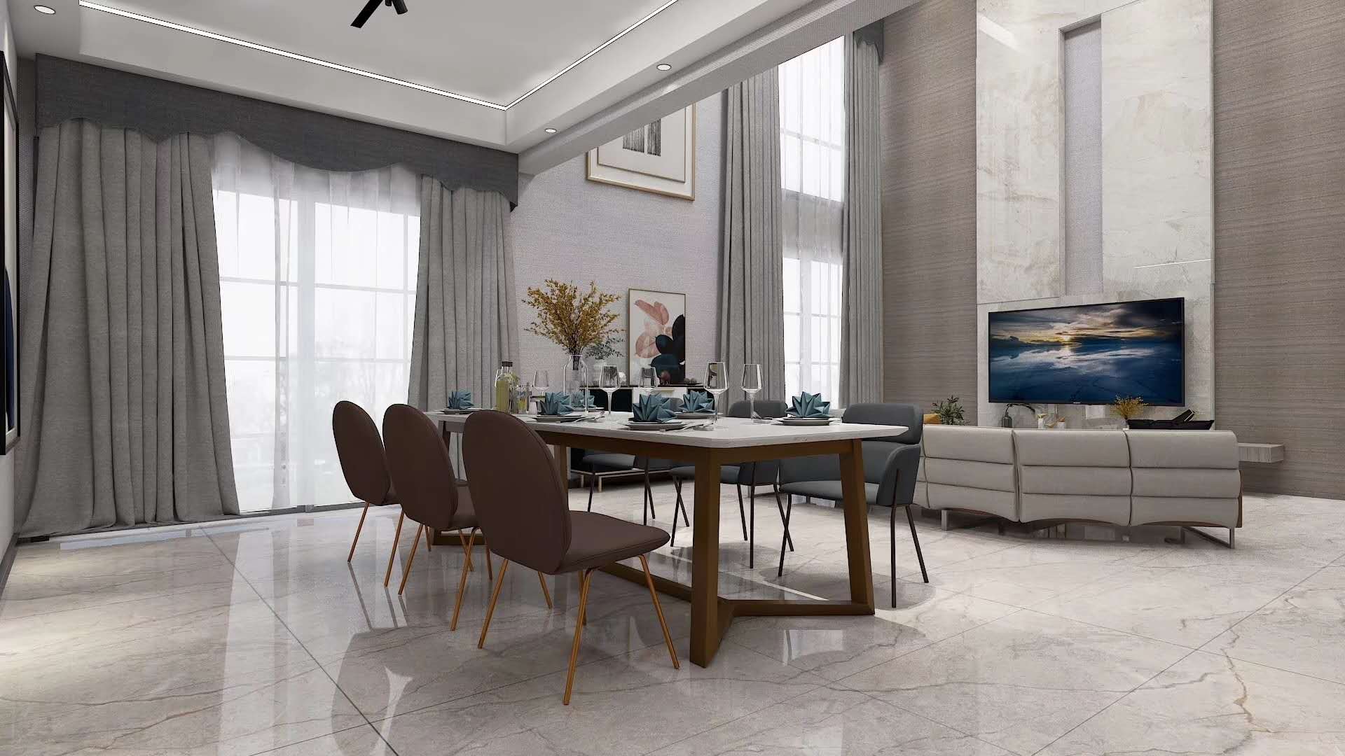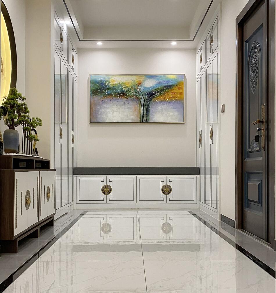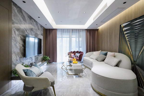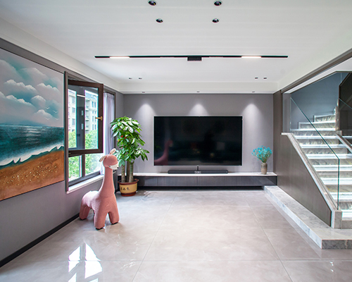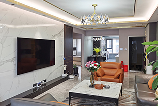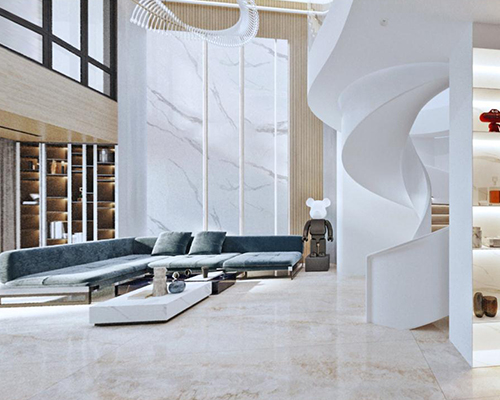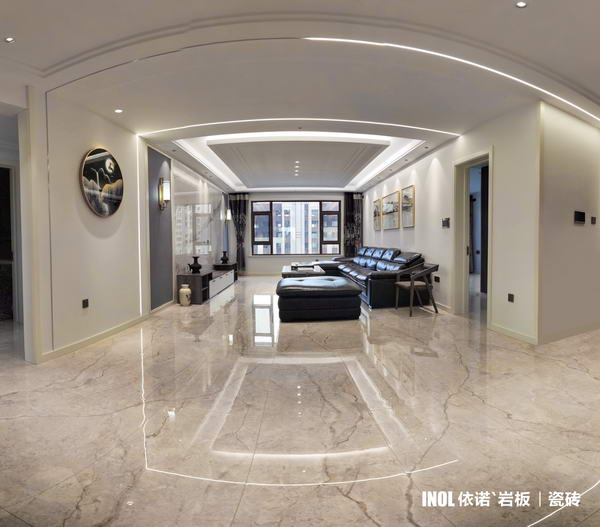 本期依諾巖板瓷磚家裝實景案例,位于廣東佛山·天安鴻基聽濤山莊1000㎡現代空間,現代輕奢風格,在每一個空間里,都能找到理想生活的姿態。