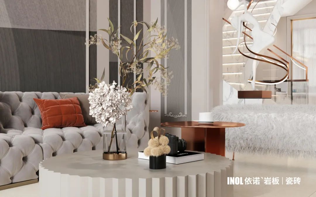 本期依諾巖板瓷磚【老友記】家裝案例,200㎡意式輕奢空間,以材料本身的色彩、質感與光影的流動,詮釋低調而優雅的生活方式。