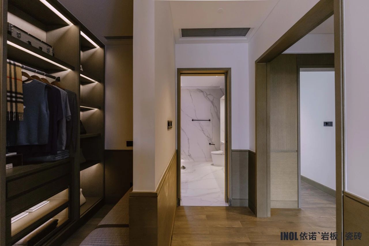 本期依諾巖板|瓷磚家裝案例,位于山東濱州·學府名著的190㎡家裝空間,以利落線條與隱形收納重構生活美學。