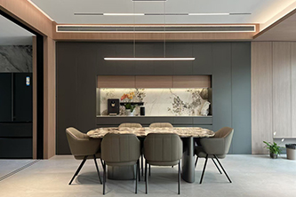 依諾巖板×合景泰富集團,290㎡現代墅境大平層裝修案例,打造大宅才有的奢闊空間。