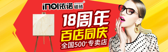 慶祝依諾磁磚成立18周年,依諾天貓旗艦店與線下專賣店聯合舉辦百店同慶活動,上依諾天貓店拿優惠,到依諾實體店去享受!