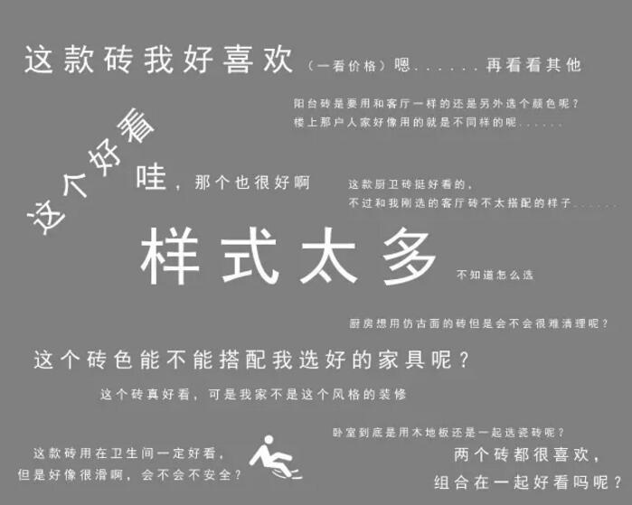 很多裝修的朋友都會碰到一個問題,就是瓷磚如何選購呢?瓷磚的選購是很講究,從家居的風格到瓷磚的材質,再到每塊瓷磚的大小都對將來鋪貼出的效果和使用有著密不可分的作用。要知道瓷磚一旦鋪上后發現有問題再想返工,可就成了難題。
