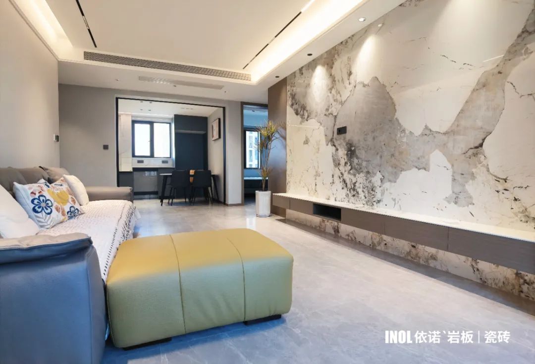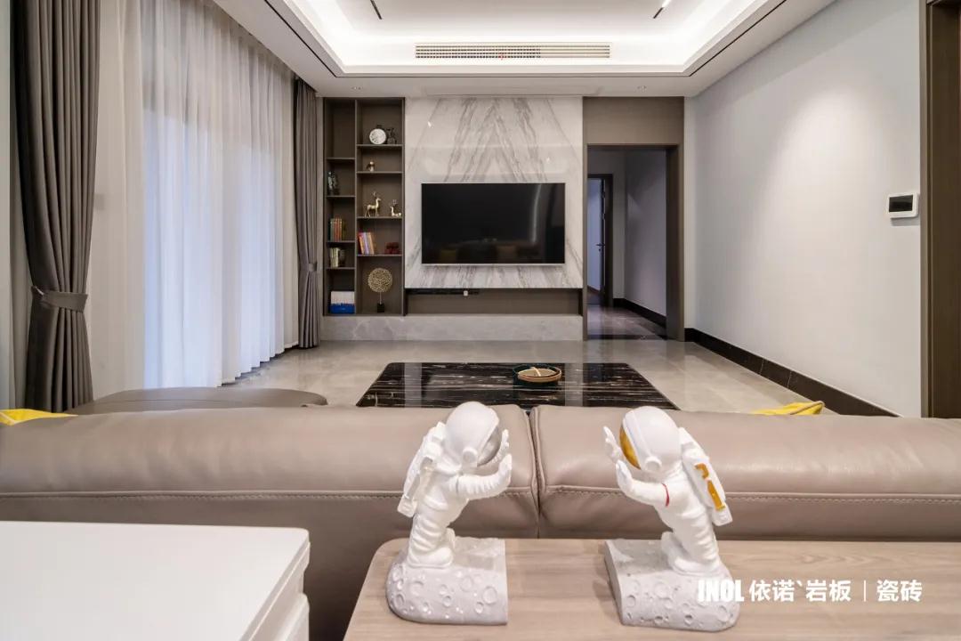 一面好看的電視背景墻瓷磚就能提升整個空間的高級感!依諾瓷磚120㎡現代簡約風家裝實拍案例,選對瓷磚好看又省錢。