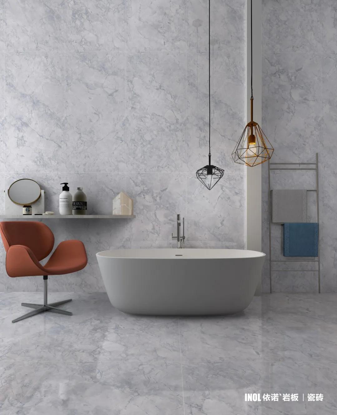 依諾巖板廠家推出【子母規格】的產品【萊姆石】,1000×2500及 750×1500兩種規格,前者可應用于客廳地面或洗手間一片到頂,后者則可用在洗手間地面或墻地通用。