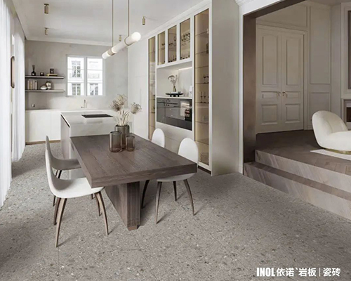 依諾巖板廠家質感系列【海巖灰】,就是這樣一款好巖板。它從表面效果、細節呈現以及規格等各方面都做了精細考量,力求讓用戶在空間中獲得美好的感官體驗。