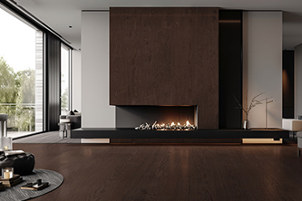依諾巖板新品“北美黑胡桃”,延續歐洲皇室御用木材的自然基因。1000×2600×9mm超大規格,上墻/下地,呈現無界延伸視覺效果。