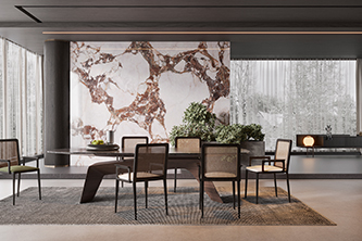 依諾巖板新品【四季粉】源自天然奢石,規格1200×2800mm、900×1800mm,融入曹植《洛神賦》中的美學哲思,再現天然珍稀石材的極致美感與靈動神韻。