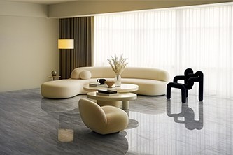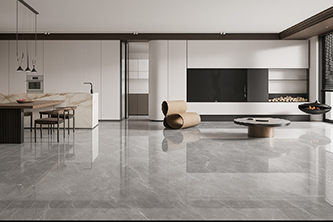 依諾巖板瓷磚新品【極光灰】750×1500mm黃金規格,精準匹配現代建筑模數,降低施工損耗。一石六面 | 無限連紋,模擬極光隨機變幻的形態增添空間的靈動感。