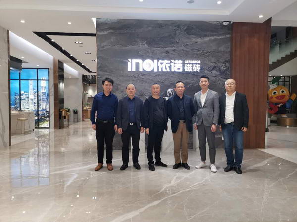 山東羅莊朱陳建材市場董事長 孫廣林、總經理 孫廣海及市場營銷商會團隊一行蒞臨依諾企業全球營銷中心參觀交流。依諾巖板瓷磚對此次來訪高度重視,并安排了專業的講解團隊全程陪同,為參觀團詳細介紹了依諾巖板瓷磚品牌理念、產品特色及生產工藝。