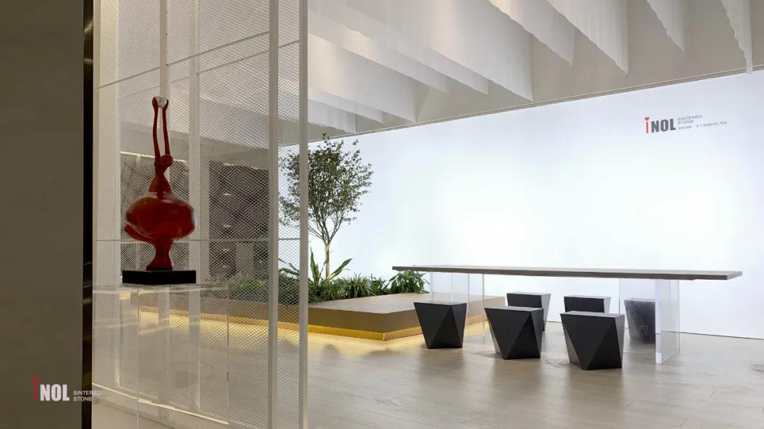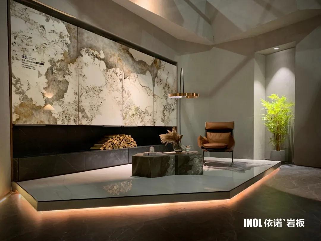 依諾巖板瓷磚晉江新店以500㎡的靜奢之境,不僅是產品陳列空間,更是以巖板/瓷磚為設計語言,開啟一場材質與空間的深度對話。