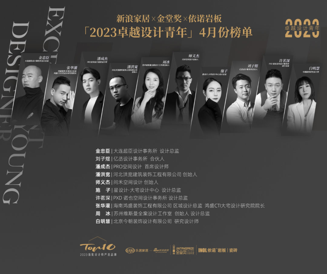 依諾巖板×新浪家居×金堂獎「2023卓越設計青年」5月榜單出爐!