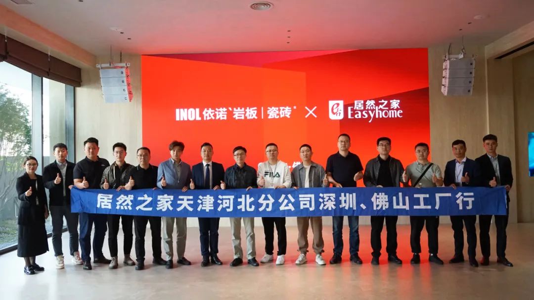 居然之家集團副總裁兼天津河北分公司總經理 文琳君、天津河北分公司招商副總監 李文彬及居然之家相關領導一行蒞臨依諾巖板瓷磚總部全球營銷中心參觀。