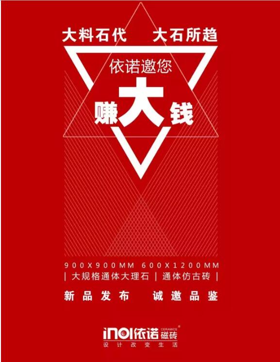 通體大理石依諾瓷磚全國招商大會暨大規格通體大理石、通體仿古磚新品發布會,跟隨依諾的運營思路,為您更快找到出路,給您全方位的經營支持,2016,依諾邀您一起“賺大錢“!