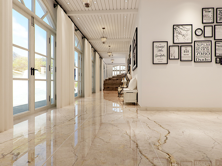 依諾瓷磚《歲月鎏金》系列與白色大理石同樣經典的,是黑色石材,但行業受限于噴墨機性能的缺陷,黑色是大家夢想擁有卻一直無法完美實現的產品。2018年,依諾斥巨資引進意大利西斯特姆最新大墨量噴頭噴墨機,結合進口意達加黑色墨水,再輔以專業的黑色釉水,將“黑”元素在 “超級大板”系列中完美地呈現出來。